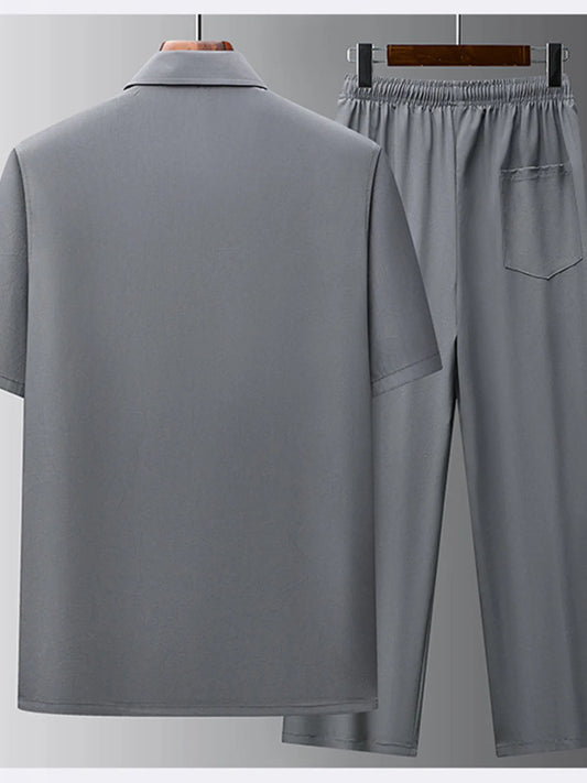 Conjunto Masculino Plus Size Camisa com Botões e Calça – Manga Curta