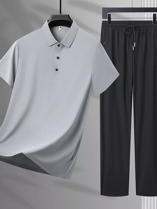 Conjunto Masculino Plus Size Polo e Calça com Detalhe em Botões