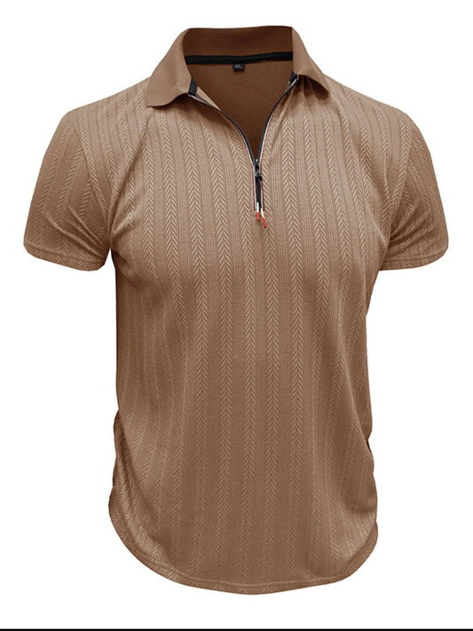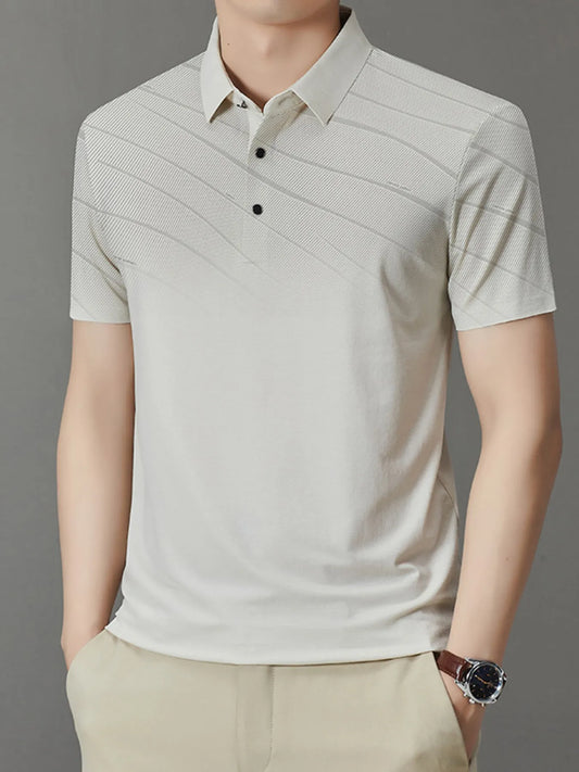 Polo Masculina Gola com Bordado Geométrico – Manga Curta